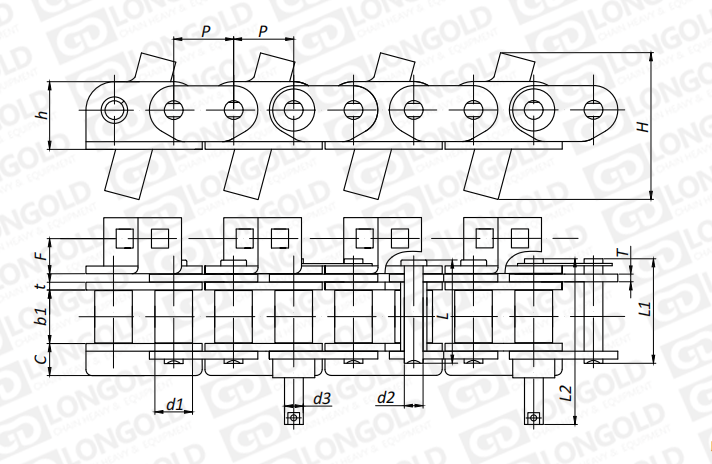附件可配裝在每一個(gè)鏈節(jié)以上的鏈節(jié)間隔,如每偶數(shù)鏈節(jié)安裝,為了容易進(jìn)行保養(yǎng),安裝在外鏈節(jié)。