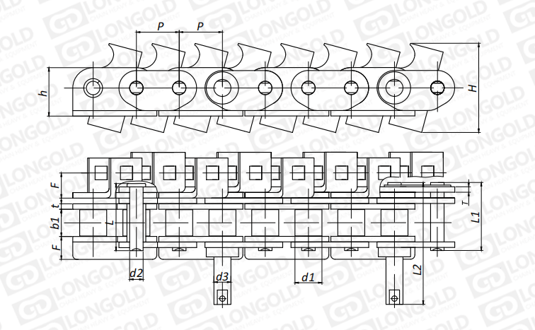 此類型鏈條是在標準短節(jié)距精密滾子鏈作為基鏈的基礎上加裝特殊附件的鏈條。