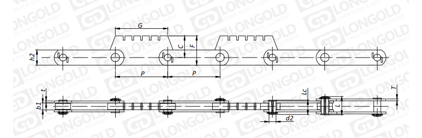 對(duì)于不同尺寸、重量和形狀的鋼鐵物料,可通過(guò)使用不同節(jié)距的鏈條或改變附件的安裝形式來(lái)滿足運(yùn)輸需求,詳情請(qǐng)咨詢隆德技術(shù)人員。