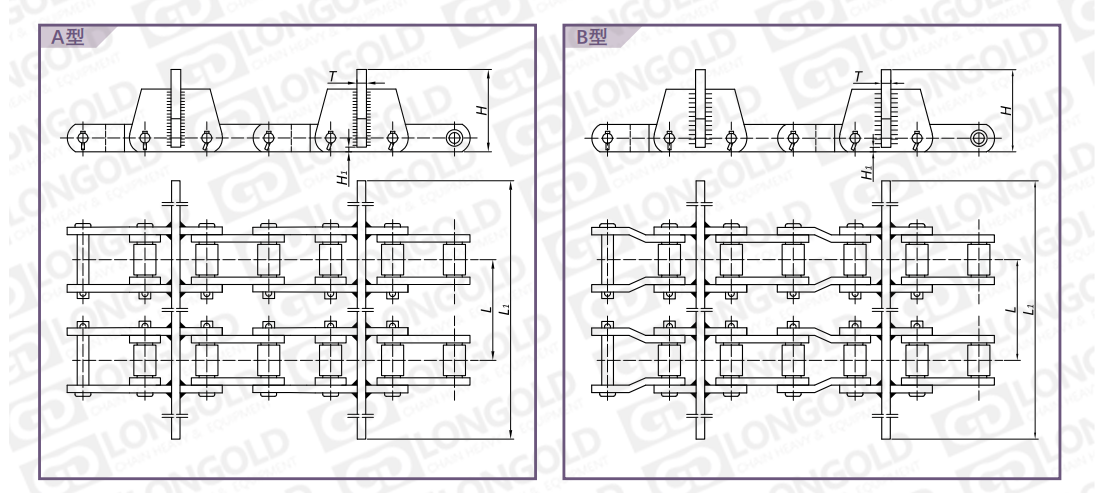 鏈條為雙排結(jié)構(gòu),能大大提升鏈條的承載能力,使鏈條的運(yùn)輸具備更高的穩(wěn)定性。