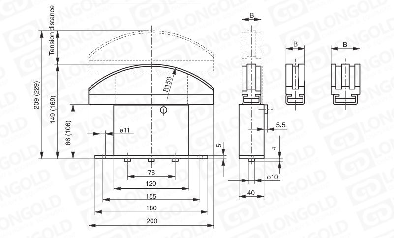 張緊力:3根彈簧,輕型,96-174N;重型,180-396N。