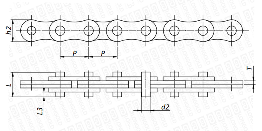板式鏈條僅由鏈板和銷子構成。鏈板被銷子連接起來,承受鏈板受到的張力。