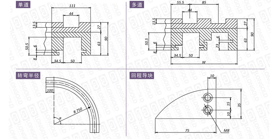 在選擇軌道時(shí),需要考慮安裝尺寸、材質(zhì)性質(zhì)、轉(zhuǎn)彎角度等因素,如有需要,請(qǐng)咨詢隆德技術(shù)人員。