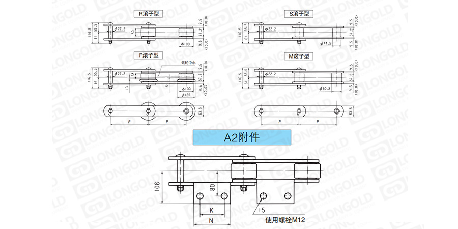 (2)滾子形式:R=大滾子 S=小滾子 F=F滾子 M=M滾子