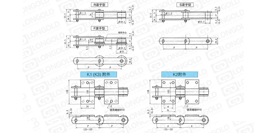 帶K附件LDC08125~LDC08150規(guī)格輸送鏈