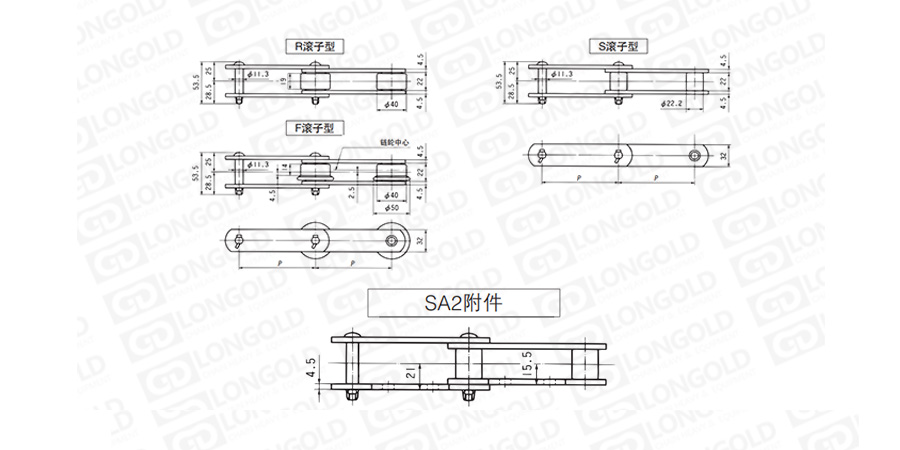 帶SA2附件LDC05100~LDC05150規(guī)格輸送鏈