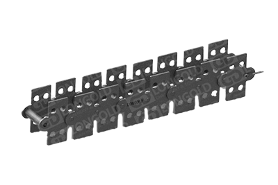 ANSI標(biāo)準(zhǔn)滾子鏈條的節(jié)距增加一倍,其他尺寸不變的鏈條。鏈條執(zhí)行ISO標(biāo)準(zhǔn),鏈條兩側(cè)鏈板向上下兩側(cè)延伸,且延伸的附板上帶有兩個孔。