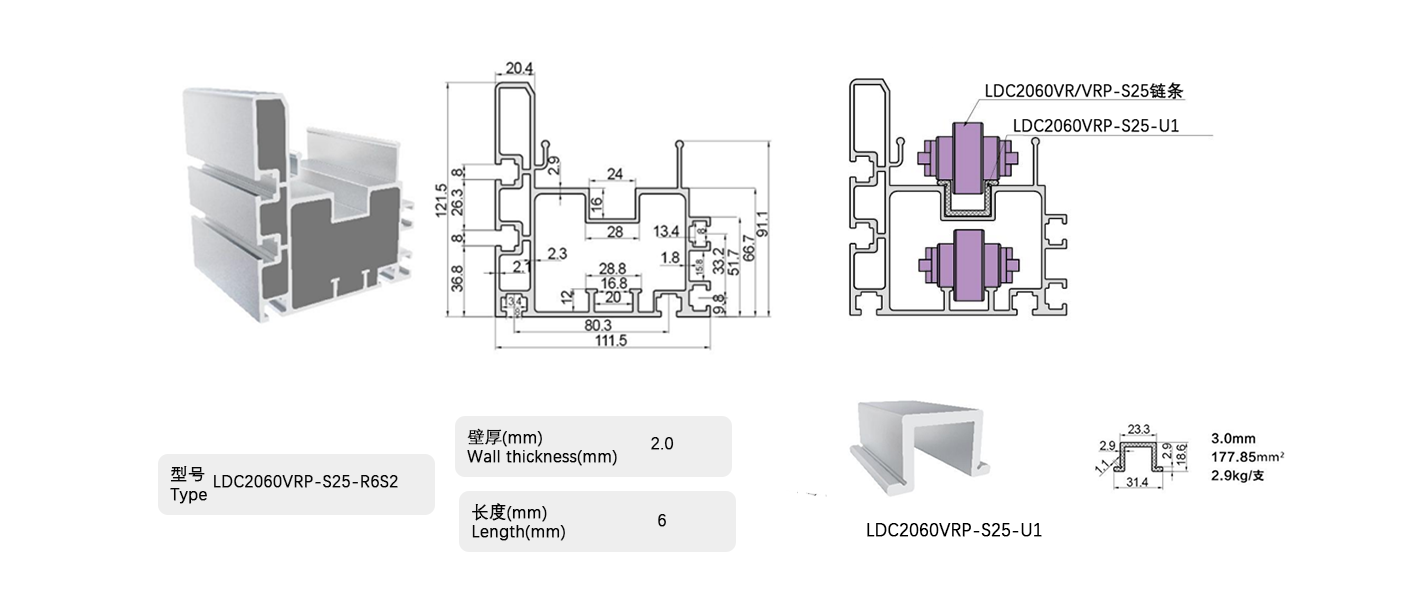 倍速鏈條用鋁制框架,用于滾子部采用工程塑料的倍速鏈條,包括帶蓋罩的倍速鏈條。在鋁制框架的輸送側(cè)小直徑滾子部安裝有鋼軌,可用于所有倍速鏈條。