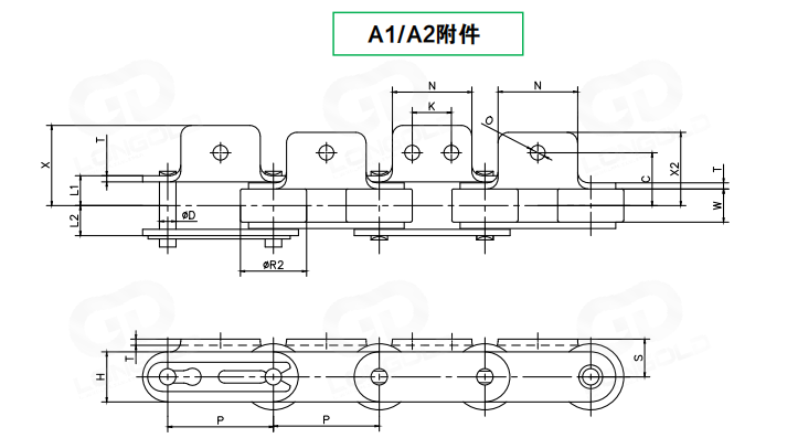 1.()內(nèi)為SS規(guī)格鏈條尺寸。