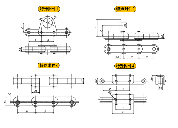 附件是為了將夾具安裝在鏈條上的零部件??筛鶕?jù)客戶要求設定安裝間隔。
