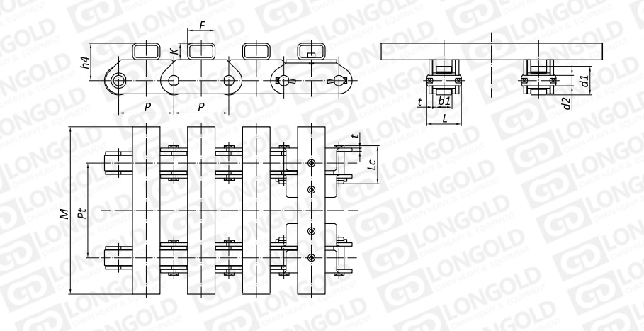 鏈條本體滾子類型有大滾子和帶F型邊滾子,鏈條的節(jié)距多為非標(biāo)節(jié)距。