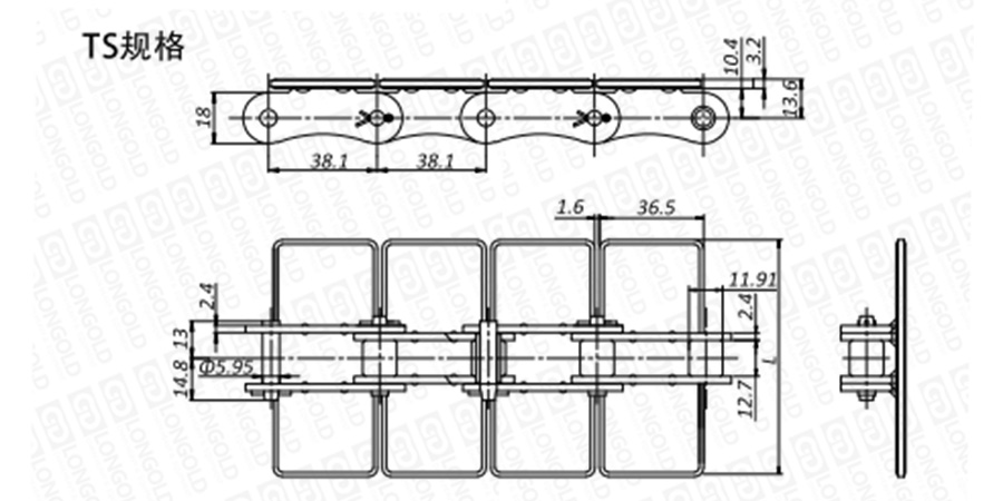 上圖為不不銹鋼頂板鏈TS規(guī)格的結構圖。