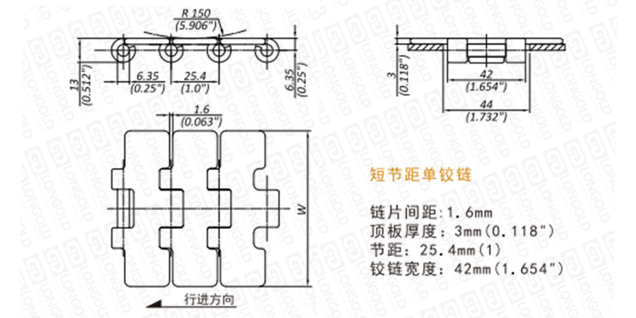 采用圓弧倒角,頂板上表面邊緣圓滑。傳送順暢、平滑,橫向和縱向間隙減小,更有利于工件運輸。