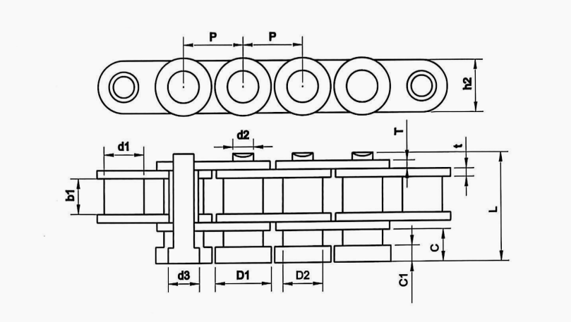 鏈條本體為鋼制,滾子材質(zhì)可自由選用。