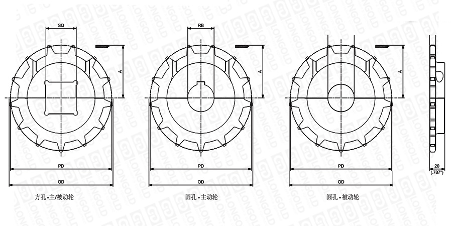 1.圓孔鏈輪表示直徑,方孔鏈輪表示邊長。