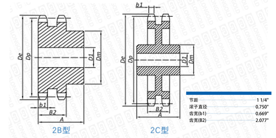 ■2B型鏈輪尺寸表