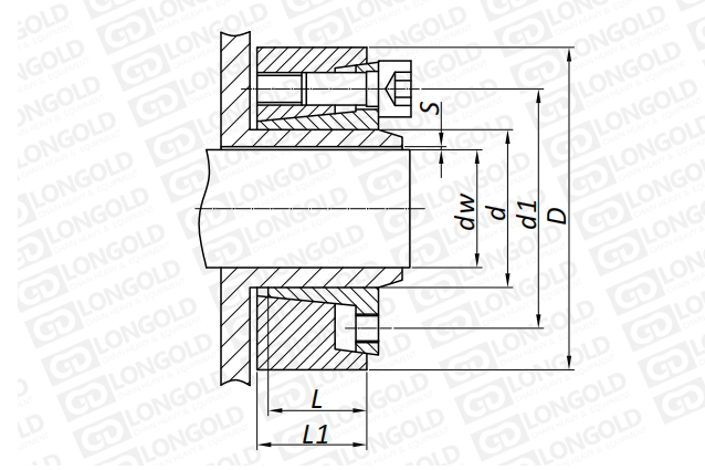 上圖為SS型脹緊套的結(jié)構(gòu)圖。