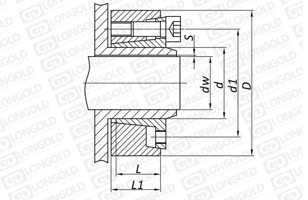 上圖為SS型脹緊套的結(jié)構(gòu)圖。