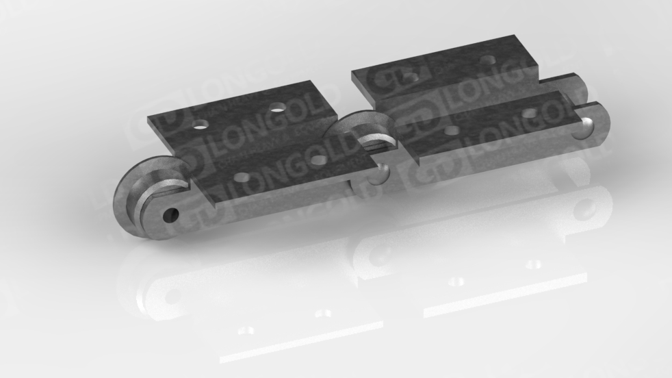 鏈條由雙倍節(jié)距鏈條衍生而來(lái),通過(guò)裝備標(biāo)準(zhǔn)附件或非標(biāo)附件使鏈條滿足特定的工作需求。