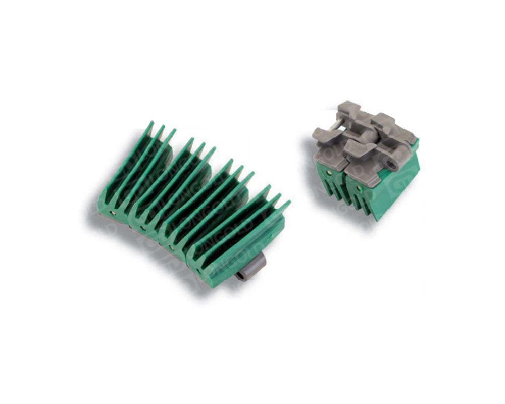 EW1873T系列鏈條為勾腳型雙體夾瓶鏈。鏈片為塑料材質(zhì),鏈片上有橡膠材質(zhì)的長(zhǎng)齒,長(zhǎng)齒結(jié)構(gòu)在發(fā)生彎曲變化時(shí)不會(huì)對(duì)產(chǎn)品和傳送線增加壓力,適合于輸送空玻璃容器類產(chǎn)品