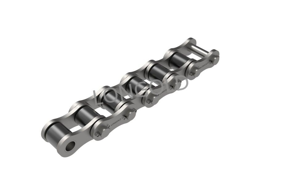 開口銷滾子鏈條,是指滾子鏈條每節(jié)連接處銷軸易端采用開口形式,用開口銷卡住以防外鏈片脫落。由于采用了開口銷結(jié)構(gòu),鏈條每節(jié)都可以方便拆卸更換,但其穩(wěn)定性弱于鉚合型。