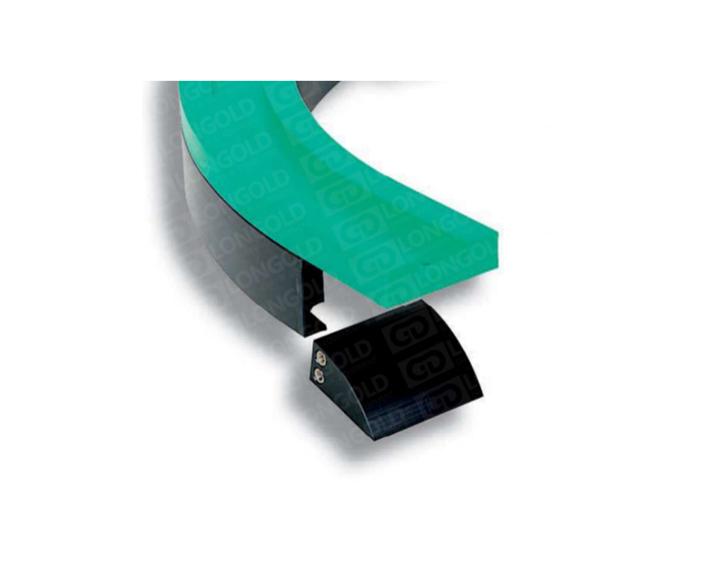 磁性轉(zhuǎn)彎軌道結(jié)合了金屬和塑料鏈板兩個系統(tǒng),即金屬頂板鏈和塑料頂板鏈能安裝在相同的磁性轉(zhuǎn)彎軌道上。將兩塊磁鐵嵌入軌道底部,并采用一塊金屬板進行連接,可以吸住鏈條使其穩(wěn)定運行,鏈板通過軌道時無蠕行現(xiàn)象以及鏈板與軌道完美貼合無側(cè)翻的效果