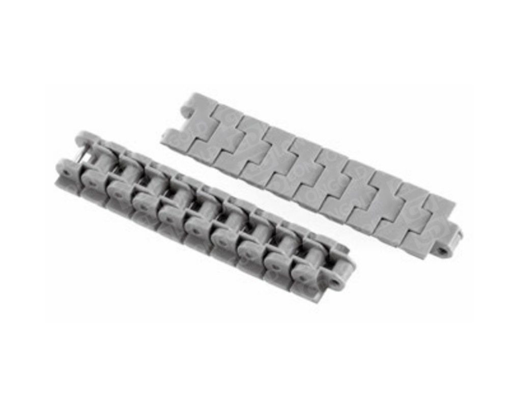 頂板鏈的鏈板通常比較寬大且厚實,其形狀多為平板狀。LSP60鏈條的側彎鏈形式,用于曲線輸送機。 銷軸有不銹鋼銷型和塑料銷型