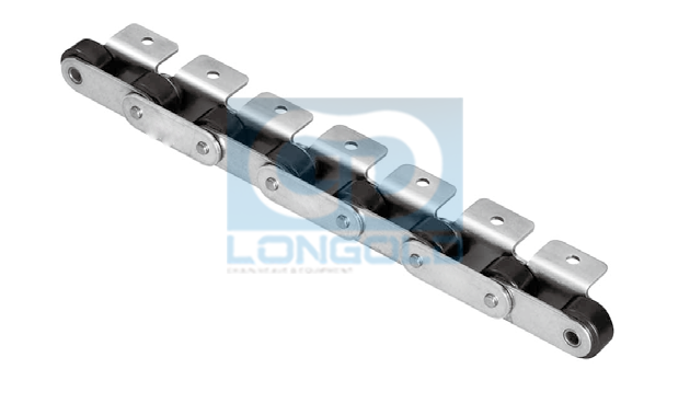 本體鏈條為雙倍節(jié)距輸送鏈,鏈條滾子為特殊工程塑料制R滾子,比普通工程塑料滾子噪音更低。本體鏈條可為普通規(guī)格,鍍鎳規(guī)格和SS不銹鋼規(guī)格。
