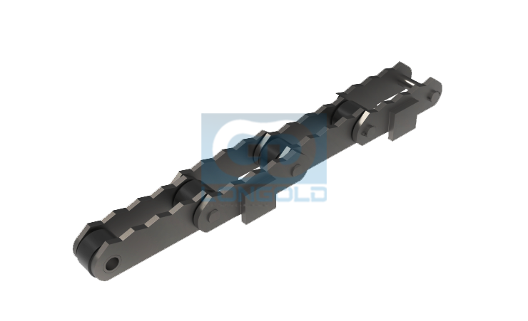 采?ANSI標準/ISO標準滾?鏈,并與鏈輪嚙合傳動,鏈板所帶的尖??于夾持?材輸送,?該類型鏈條可實現(xiàn)鏈條和物料同步運行,即夾帶帶狀物品時進行輸送。廣泛應(yīng)用于紡織機械。