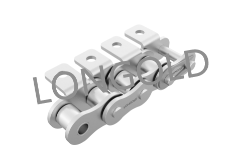 通過各種材料的組合,適合于水中、酸性及堿性等腐蝕性環(huán)境中或低溫、高溫的特殊環(huán)境里使用,且鏈條的單側鏈板延伸作為鏈條附板,且附板上帶有一個孔的A系列小型輸送鏈。材質使用相當于SUS304規(guī)格的不銹鋼材料。