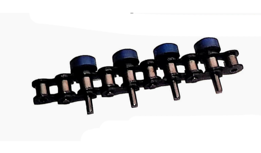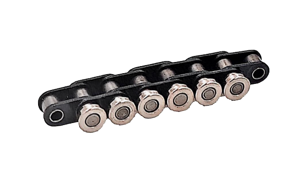 | 鏈條一側銷軸延長安裝階梯型側置滾輪,具備極佳的導向效果 |