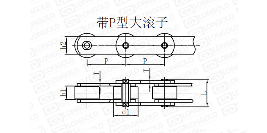 上圖為帶P型大滾子M系列標(biāo)準(zhǔn)輸送鏈的結(jié)構(gòu)圖。