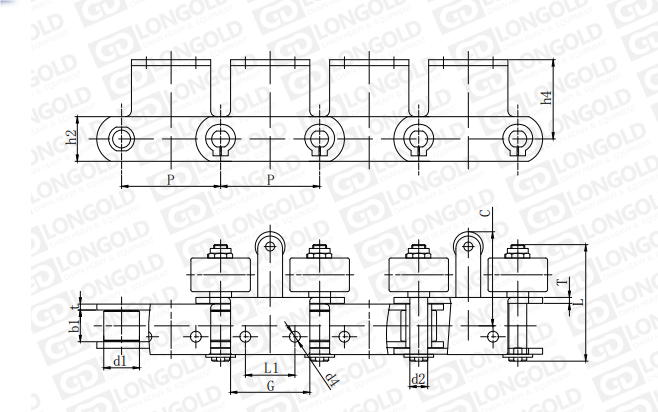 附件是為了將夾具安裝在鏈條上的零部件??筛鶕?jù)客戶要求設定安裝間隔。