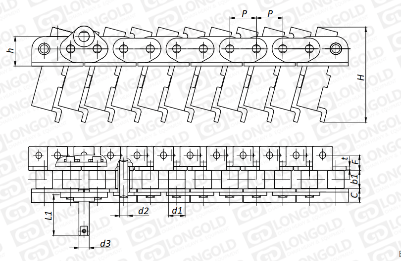附件是為了將夾具安裝在鏈條上的零部件??筛鶕?jù)客戶要求設(shè)定安裝間隔。
