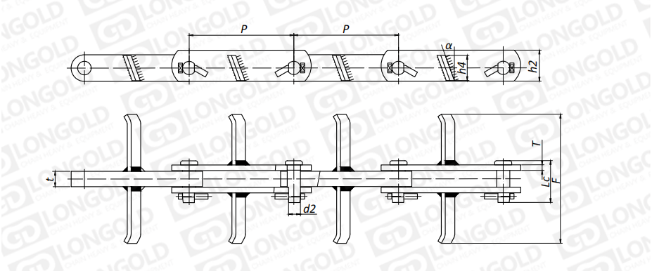 附件是為了將夾具安裝在鏈條上的零部件。可根據(jù)客戶要求設(shè)定安裝間隔。