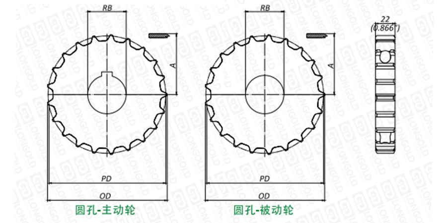 上圖為803系列鏈輪主動(dòng)輪以及被動(dòng)輪的結(jié)構(gòu)圖。