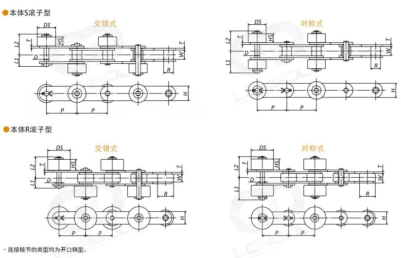 (2)鏈條本體的滾子類型:S=S滾子,R=R滾子,RP=塑料R滾子