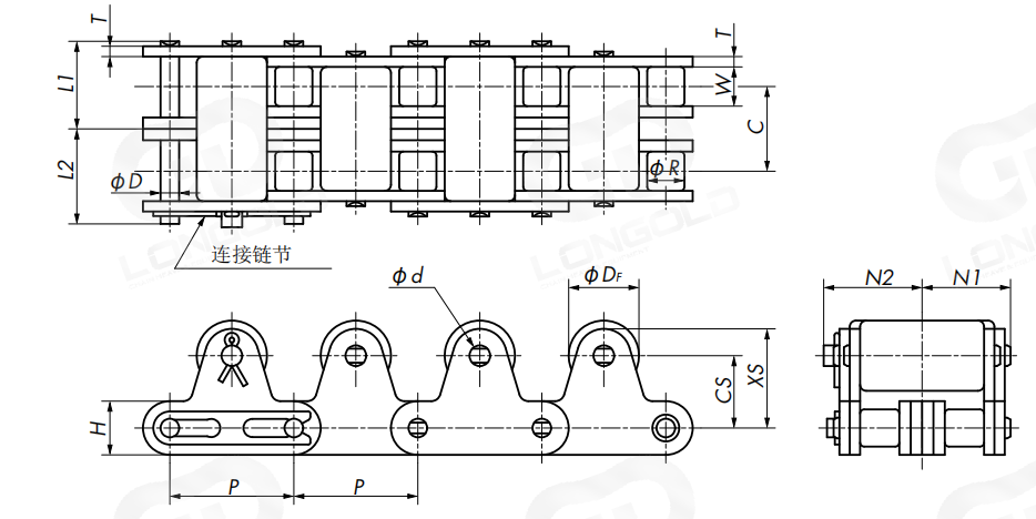 1. LDC2040-LDC2060的連接鏈節(jié)為卡簧型。其他為開(kāi)口銷型。