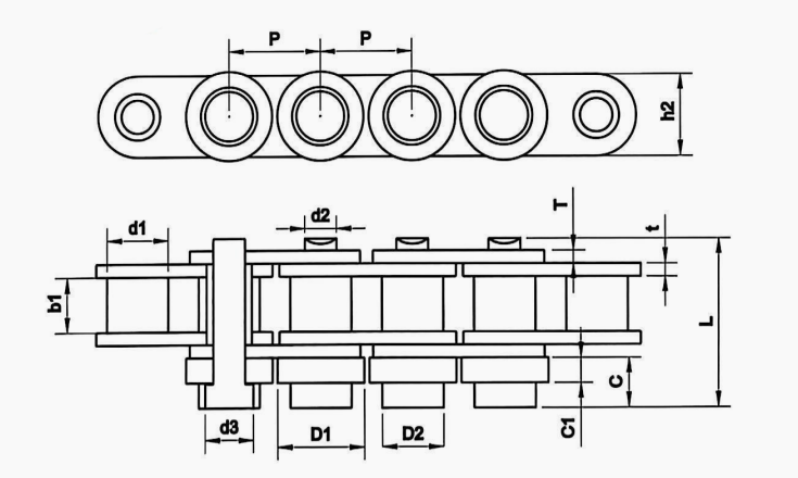 鏈條本體為鋼制,滾子材質(zhì)可自由選用。