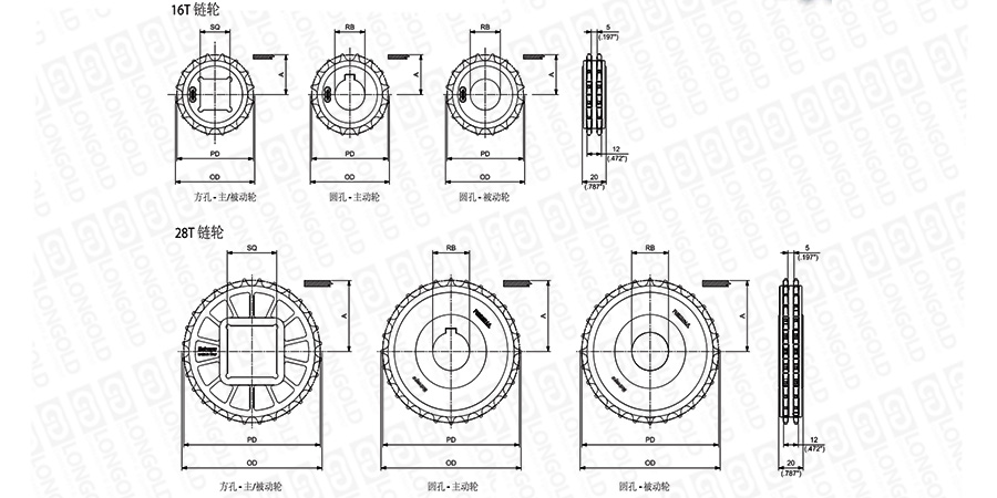 注:圓孔鏈輪表示直徑,方孔鏈輪表示邊長。
