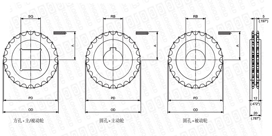 1.圓孔鏈輪表示直徑,方孔鏈輪表示邊長。