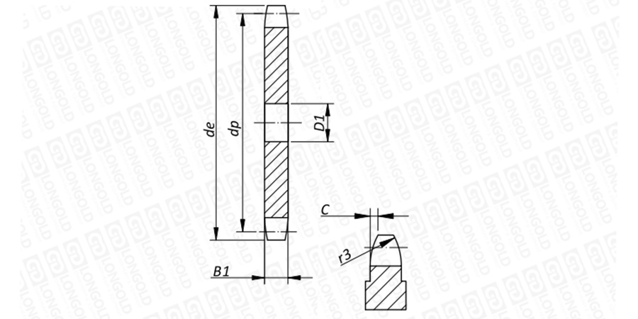 齒部硬化:需要提高齒端強(qiáng)度和磨損壽命的場(chǎng)合,推薦使用齒端硬化鏈輪。各個(gè)尺寸小齒數(shù)的機(jī)械用碳素鋼輪轂切削規(guī)格,齒端部均實(shí)施硬化處理。
