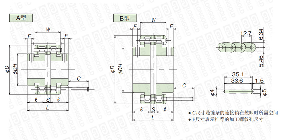 該類鏈條聯(lián)軸器安裝時可容許誤差與標準型比較擴大近2倍,請參照型號表里的規(guī)格進行訂購。