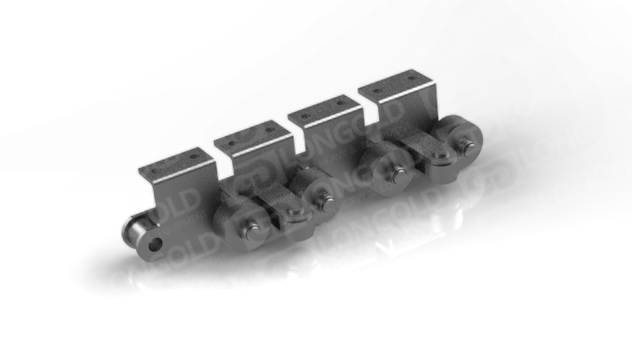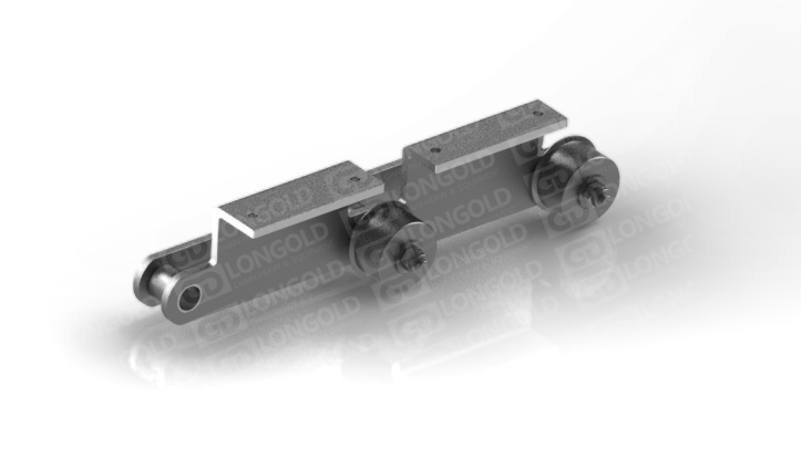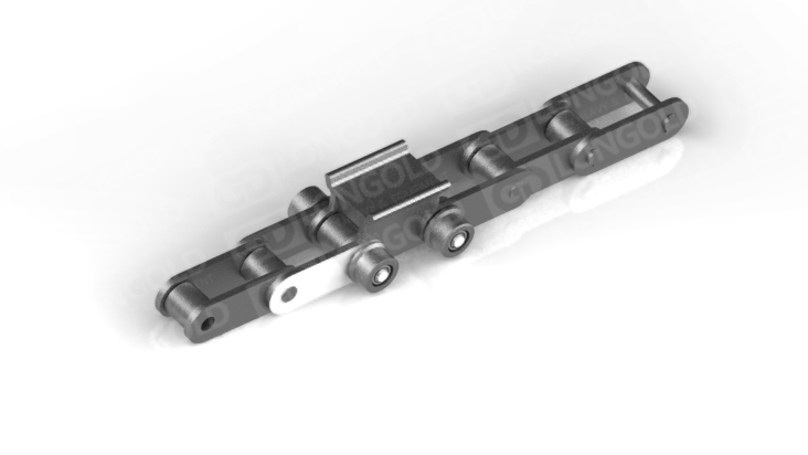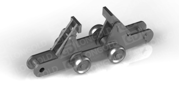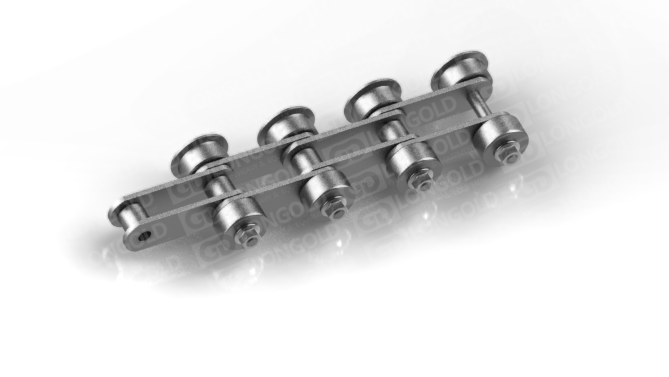 帶側(cè)置滾輪的汽車(chē)汽車(chē)生產(chǎn)線鏈條,側(cè)置滾輪能減少鏈條運(yùn)動(dòng)時(shí)的摩擦阻力,使鏈條能夠更加順暢地在軌道上運(yùn)行。