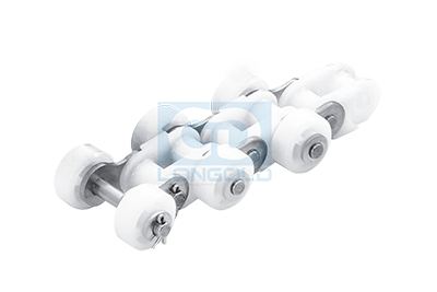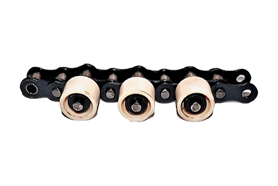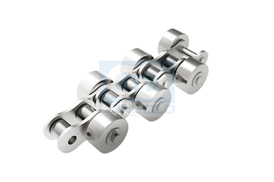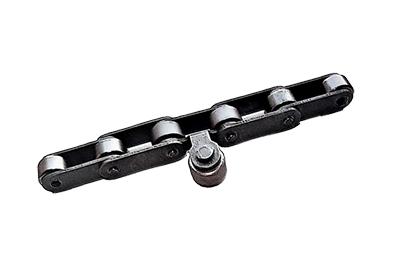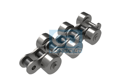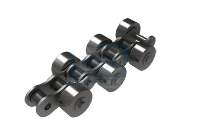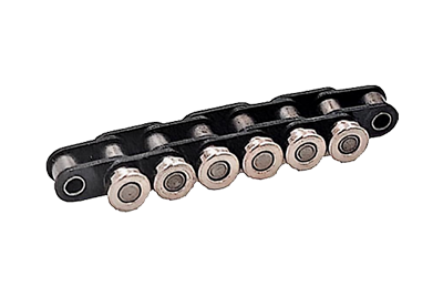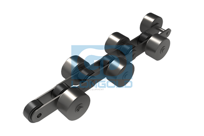 帶側(cè)置滾子鏈條,是延長雙倍節(jié)距或短節(jié)距滾子鏈條的銷軸,然后安裝自由旋轉(zhuǎn)的側(cè)置滾子的輸送鏈條。