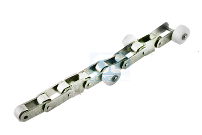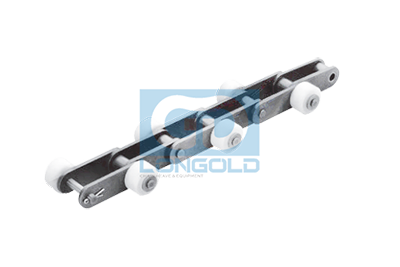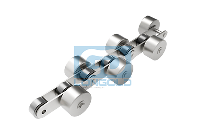 帶側(cè)置滾子鏈條,是延長(zhǎng)雙倍節(jié)距或短節(jié)距滾子鏈條的銷(xiāo)軸,然后安裝自由旋轉(zhuǎn)的側(cè)置滾子的輸送鏈條。